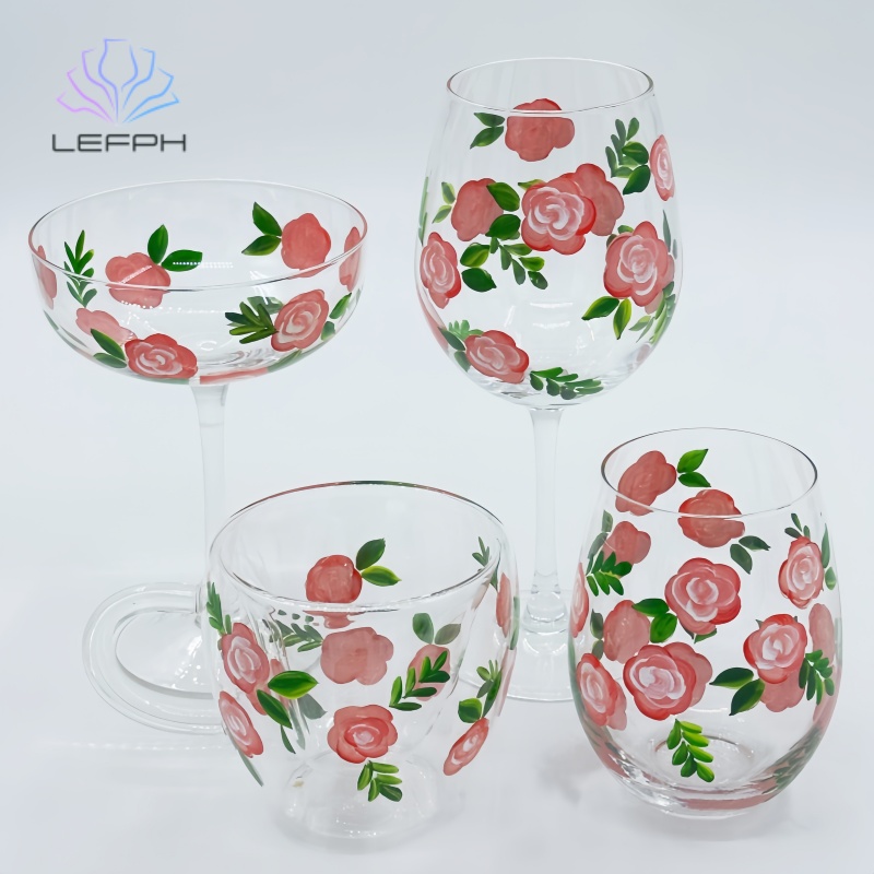 • Hand-painted rose wine glassHand-painted rose wine glass