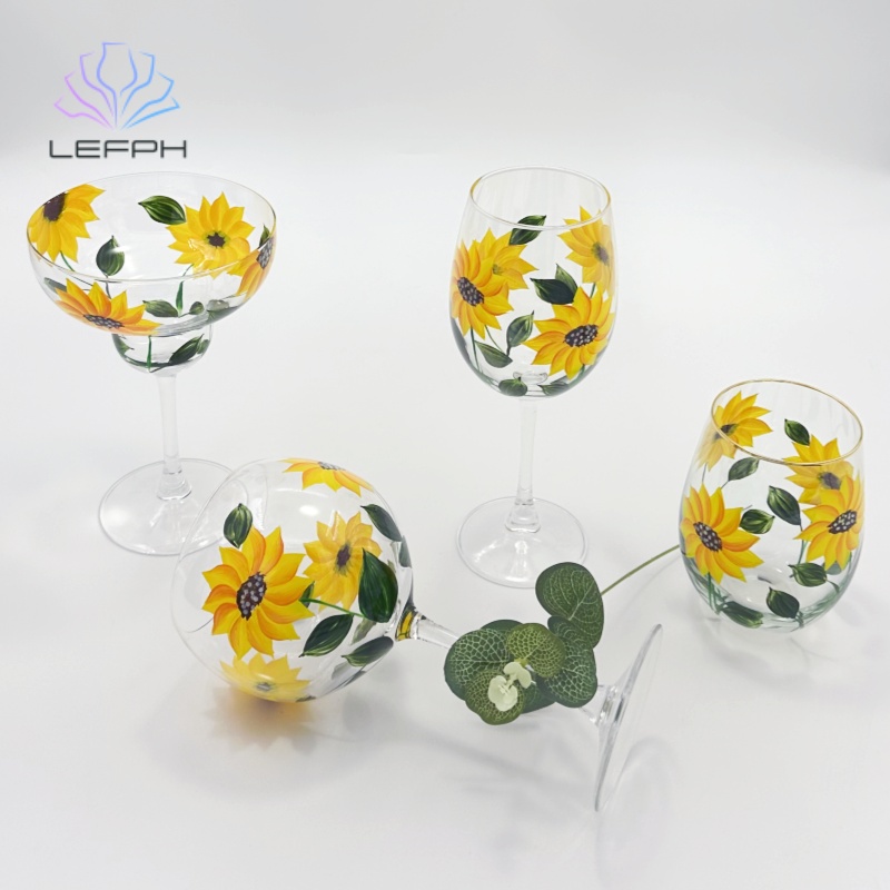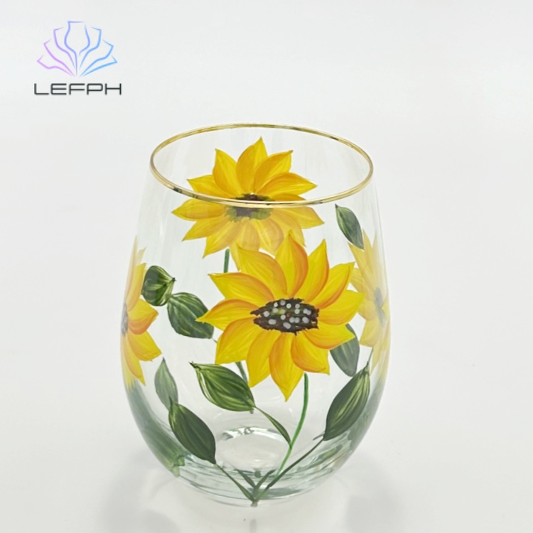手绘向日葵红酒杯