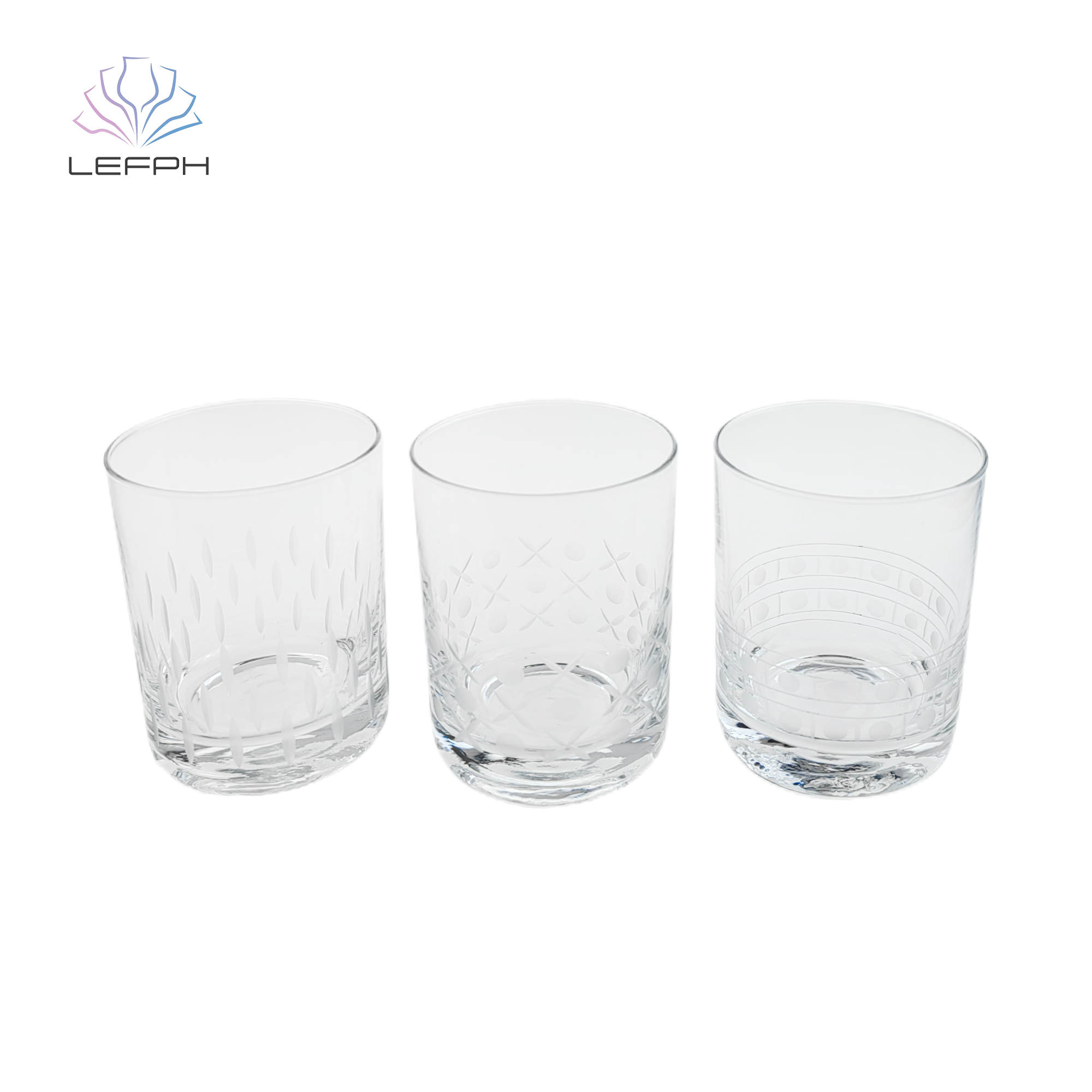 Set of three cut whisky cups