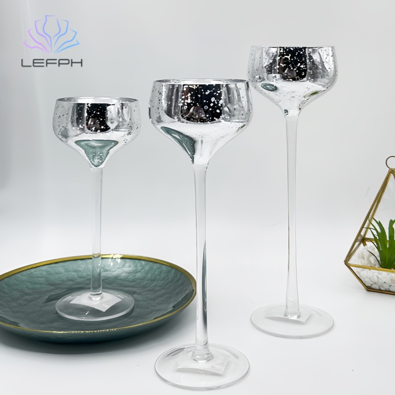 Electroplated glass candle holder set